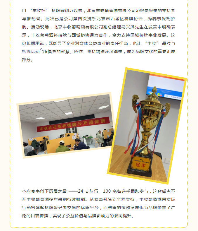 四年携手,以酒为媒!丰收葡萄酒赋能桥牌赛事,绽放品牌新活力