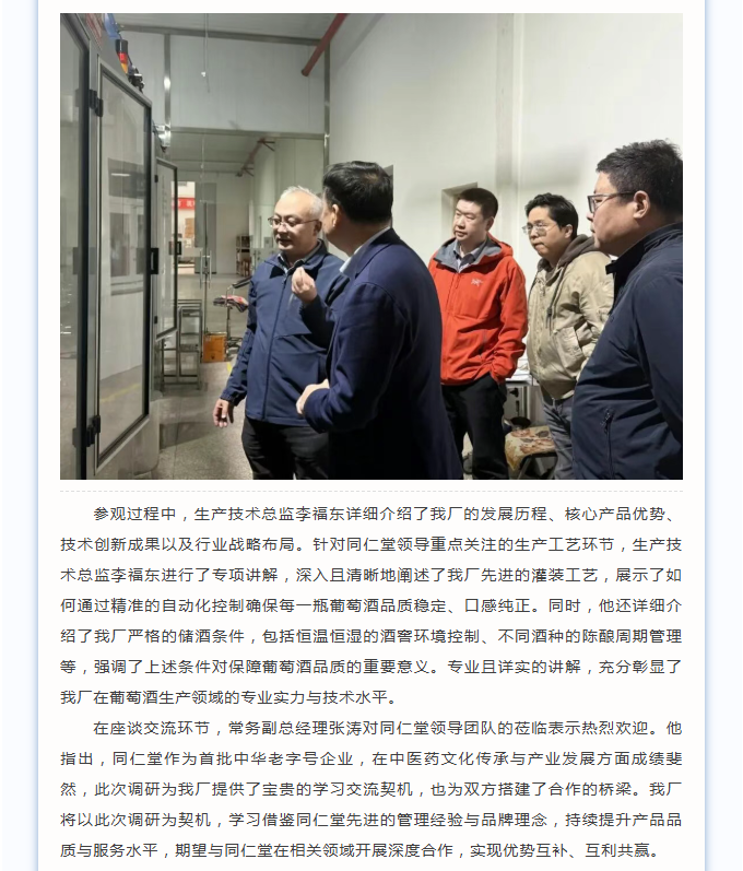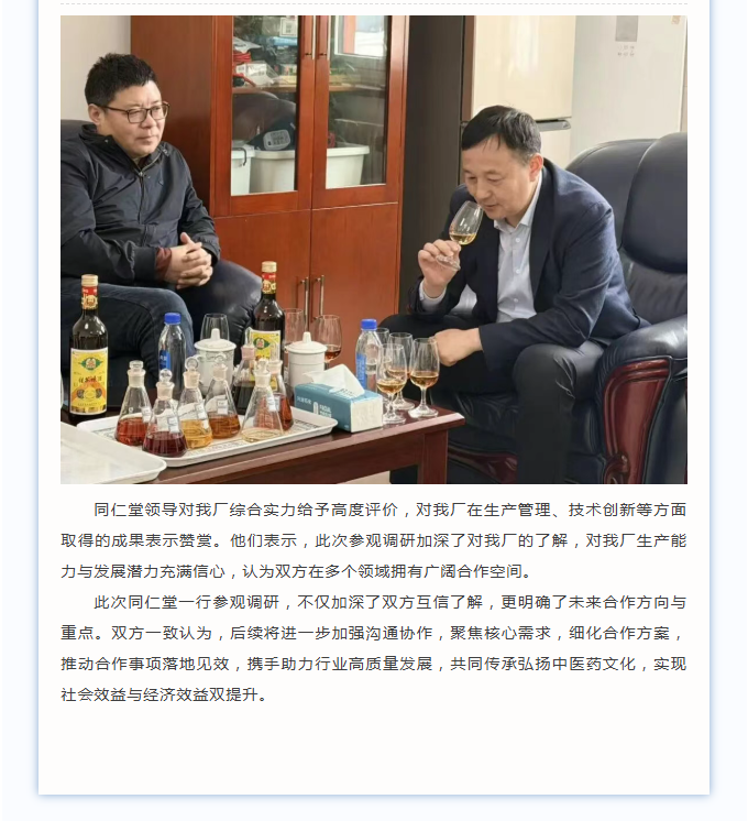 携手百年同仁,共酿合作新篇——同仁堂领导莅临我厂参观调研