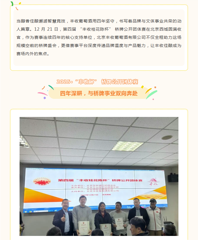 四年携手,以酒为媒!丰收葡萄酒赋能桥牌赛事,绽放品牌新活力