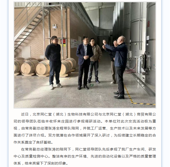 携手百年同仁,共酿合作新篇——同仁堂领导莅临我厂参观调研